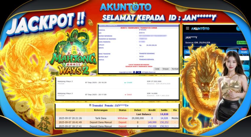 AKUNTOTO JACKPOT SLOT MAHJONG WAYS 2 Rp 29.000.000 JUMAT 08 SEPTEMBER 2025