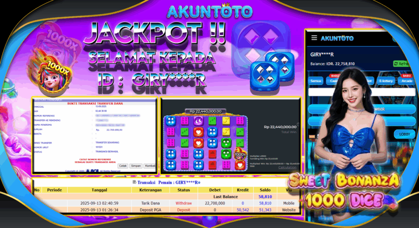AKUNTOTO JACKPOT SLOT SWEET BONANZA 1000 DICE Rp 22.700.000 SABTU 13 SEPTEMBER 2025
